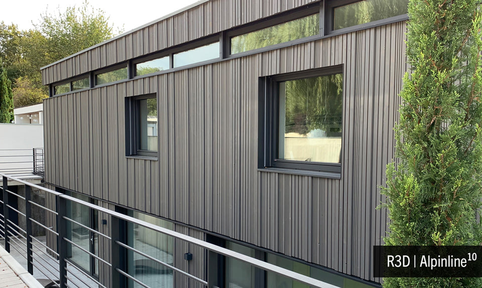 Kompozycja R3D z efektem trójwymiarowości bazuje na trzech różnych deskach o różnych wymiarach i wzorach strugania, które można ze sobą łączyć w dowolnej kolejności, liczbie powtórzeń i liczbie użytych elementów. W ten sposób na fasadzie budynku uzyskujemy efekt trójwymiarowości, który za każdym razem ma charakter indywidualny.